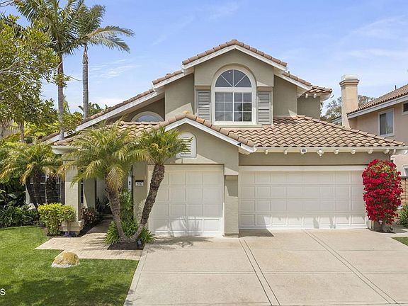 A Beautiful Custom remodel in prestigious Peter's River Ridge Golf Community. This 4 BR, 3.5 bath, 2768 SF home combines elegant finishes & designer fixtures! Situated half way between Malibu & Santa Barbara - the coastal weather is fantastic! Entering thru the custom painted front double doors, take in the soaring ceilings, gorgeous walnut wood floors, custom metal & wood curved staircase & designer chandelier, bathed in natural light from numerous dual paned double hung windows. The original sunken living room floor was raised to create a large entertainment space which connects to the dining area. The elegant curved staircase leads to a large 2nd floor landing and 3 bedrooms. The large master suite has a double door entry, vaulted ceilings, dense wool carpet, separate walk-in closets w/ mirror doors, built-in cabinets & cedar lined shelving. The master bath features a 2 sink vanity, dual medicine cabinets w/ hidden thick glass shelving & are mirror lined w/ electrical plugs. The marble shower has 1/2' thick Starlite glass. Enjoy the large soaking tub w/ hand-held filler & deck surround with a private tropical treetop view. The guest bedroom includes a walk-in closet & ensuite bath w/ separate vanity & shower rooms. The upstairs front bedroom/media room has a vaulted ceiling & built-in bookcase. The kitchen features high-end Viking & Thermador appliances, custom Alderwood cabinets w/ rollout drawers, granite counters, large pantry, Pentaire water filter at large dual sink under a window box w/ remote control shade & dining area. The family room's custom designed travertine gas fireplace & recessed & art spot lights provide a relaxing view thru large windows to the lush private backyard. The 5 foot wide hallway leads from the family room past the large coat closet and storage to a powder room for guests. The 1st floor bedroom/office includes an ensuite full bath. The laundry room w/ cabinets & sink lead to the 3 car finished garage, with a coated floor, work bench & wall of build-in cabinets, a large softwater tank and new large water heater. Custom mature landscaping also includes pavers & flagstone, a wall fountain & a large Sunsetter automatic shade w/ lighting. Automatic sprinklers and landscape lighting is plumbed front and back. This home is in a prime location within walking distance to the pool, spa, tennis/pickle ball court & greenspace amenities. Shopping, golf & clubhouse, 2 harbors & beaches are minutes away.