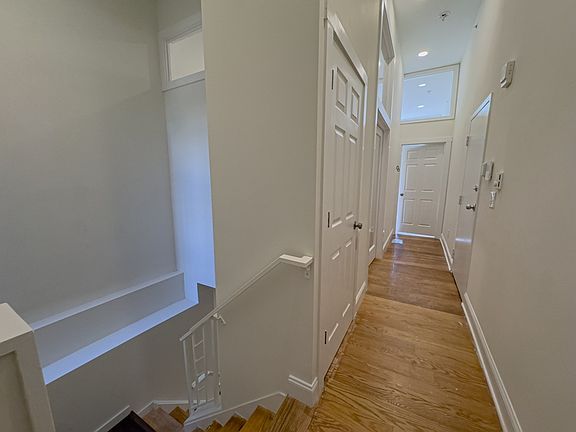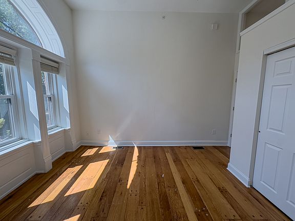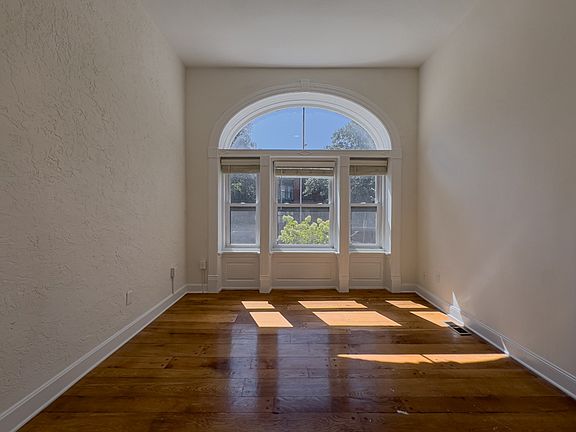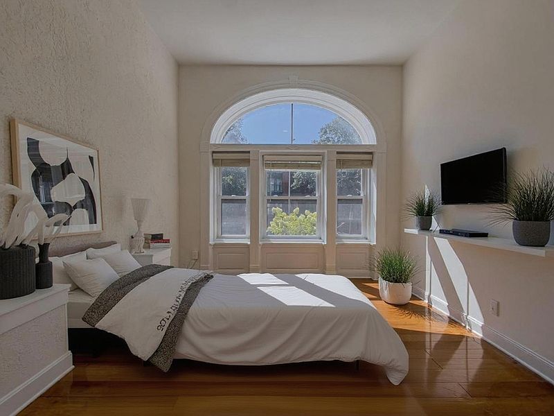 - First level includes 2 bedrooms and 1 bathroom. The front bedroom serves as a spacious primary, comfortably fitting a king or queen bed with ample storage. Large historic windows overlook Green Street through a raised garden, filling the space with natural light