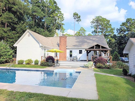 Welcome to your own private oasis, perfectly situated in one of the most desirable neighborhoods in Bainbridge. This captivating 3-bedroom, 2-bathroom home has the perfect blend of rustic charm and modern comfort, all nestled on a sprawling 1.4-acre lot. Tucked away at the back of a quiet circle, this home promises peace and privacy with no through traffic, making it an ideal retreat from the hustle and bustle.Step inside and be greeted by the warmth of gleaming hardwood floors that flow seamlessly throughout the home. The heart of the house is a spacious, open-concept living area, bathed in natural light and anchored by a cozy gas log fireplace for gathering with family and friends on cool evenings.The true magic of this property lies just outside. Imagine starting your day with a cup of coffee on the tranquil wrap-around porch, taking in the serene sounds of nature. In the afternoon, entertain effortlessly on the expansive back deck, where a magnificent covered pavilion provides the ideal spot for al fresco dining and relaxing in the shade. The deck overlooks a sparkling in-ground pool, inviting you to cool off on hot summer days.Beyond the deck, the possibilities are endless. For the hobbyist or craftsman, a large, wired shop is a great space for projects, storage, or a dedicated workspace. Green thumbs will delight in the raised-bed garden area and a separate small greenhouse, ready for you to cultivate your favorite plants and vegetables.This home is more than just a place to live; it's a lifestyle. It's where memories are made, from summer barbecues by the pool to quiet moments on the porch. With its perfect balance of indoor elegance and outdoor allure, this is the retreat you've been searching for. Don't miss your chance to call this exceptional property home.