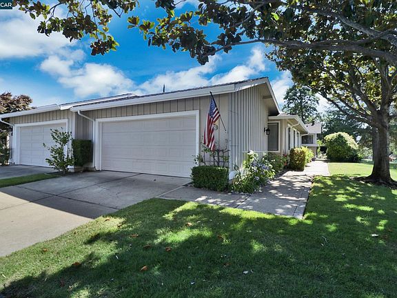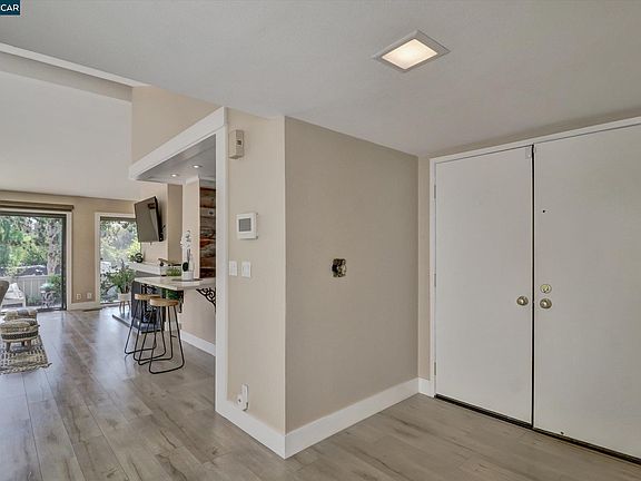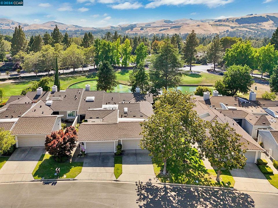 Spectacular end-unit townhome in Crow Canyon Country Club, with an open backyard patio overlooking a fountain pond bordering the putting green of Hole No. 6. Well positioned, 2113 Presidio is a very short drive from the guarded entrance of the community and a across Bay Club Crow Canyon. With double entry doors, an atrium as you enter, and vaulted ceilings in the great living space, 2113 Presidio has 3BD, 2BA (tax records show 2BD with bonus), upgraded kitchen, wraparound breakfast bar, and upgrades over recent years such as laminate flooring and stone counters. Enjoy living in this serene setting, near shops, freeway access, and hospital.