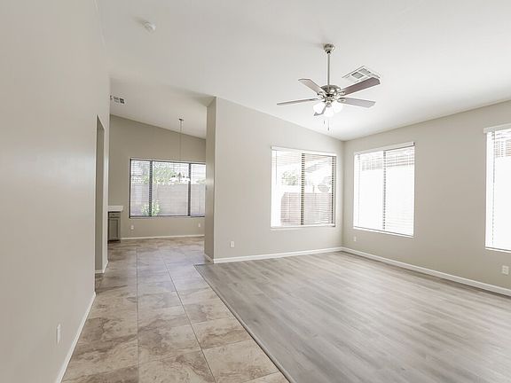 Enjoy the best of Arizona living when you move into this three-bedroom and two-bathroom rental home that includes a pet-friendly enclosed yard with a lawn and a great location near parks and playgrounds in Mesa, AZ. The single-story layout has 1,390 square feet, starting with a light-filled living room that features three big windows. A ceiling fan will keep you cool, and the gray plank floor looks great with the neutral-colored walls. Step into the kitchen to find stylish quartz countertops and stainless-steel appliances. A storage pantry offers extra space. A vaulted ceiling welcomes you into the spacious primary suite, where you?ll find a large walk-in closet and dual vanity sinks in the private bathroom. Contact us for your tour today!