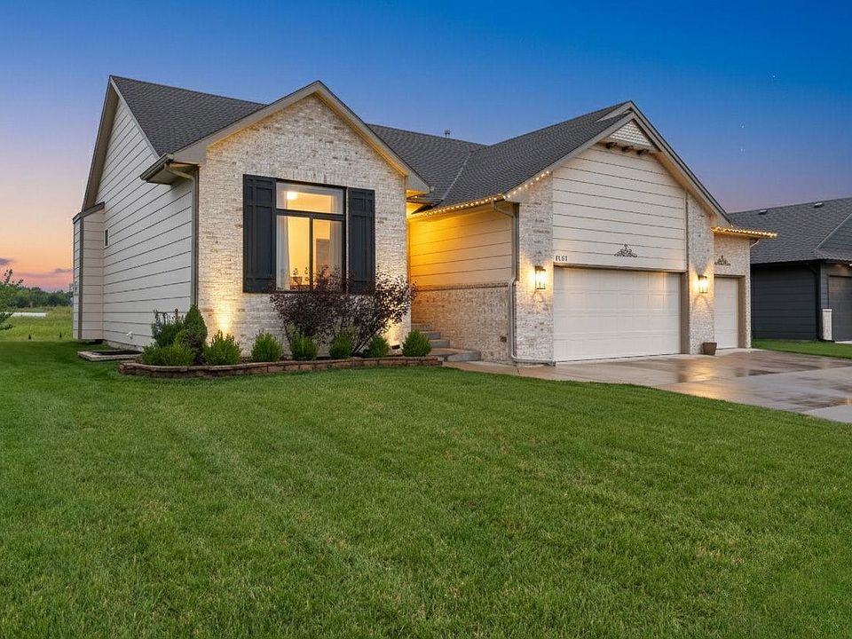 Beautiful curb appeal, invites you into this 4 bedroom, 3 bath home packed with features you'll love. The open floor plan and high 10 ft ceilings give the space a grand feel. The kitchen features soft close cabinets, gas range, refrigerator, dishwasher & microwave plus plenty of counter space to spread out. The primary suite is a retreat with large tile walk in shower, double sinks and walk in closet. Head downstairs to the huge family room with full bar (room for a full sized frig too!)- perfect for movie nights or hanging out with friends. The water softener is already in, so you'll have the benefits of soft water all year long. Step outside and enjoy the covered patio with stamped concrete accents, ideal for relaxing. There is a large shed with electricity, great for storing lawn equipment and tools/toys. Keep the yard green with the sprinkler system and irrigation well. Don't forget the oversized 3 car garage-plenty of space for cars, bikes and more!! This one checks all the boxes!!