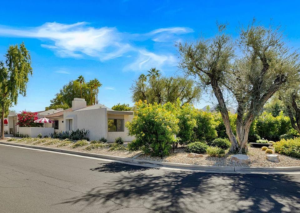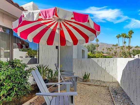 Welcome to the reimagined artist's retreat you've been waiting for -- a rare Hugh Kaptur-designed gem from 1980, nestled in the heart of Palm Springs. Located in Sunshine Villas, this 1,342 sq ft home is attached only at the garage, offering privacy, light, and flow. Positioned at the end of the row near the entrance gate, it enjoys spectacular mountain views and unmatched convenience. Notably, Priscilla Presley once lived directly across the street, adding a touch of celebrity history to the neighborhood.Inside, the home has been thoughtfully renovated with a new HVAC system, water heater, flooring, baseboards, and a stunning quartz waterfall island kitchen. Bathrooms feature sleek vanities and touch-screen lit mirrors, while artist-designed lighting and gallery-white walls -- painted twice -- create the perfect canvas for your art collection. The garage and back patio are finished with commercial-grade carpeting, and a separate covered patio offers a private space for outdoor dining or morning coffee.Sunshine Villas is a vibrant community of 120 homes, including approximately 50 rare three-bedroom units. It's divided into four quads, each with its own mountain-view pool and spa, plus four pickleball/tennis courts, a new Bark Park, and outdoor movie nights. Directly across the street, Sunrise Park offers a public pool, skate park, and Palm Springs' annual fireworks show -- all visible from your private front patio.This home has completed phase two of the new desert landscaping project, including upgraded irrigation to reduce water bills and monthly maintenance. Best of all, it comes with a rare successor land lease: just $190/month for the next 20 years, compared to $600+ on newer leases. Optional furnishings are available outside of escrow.Whether you're a full-time resident, seasonal escapee, or STR investor, this move-in-ready retreat offers architectural legacy, lifestyle perks, and unbeatable value. Create your own Palm Springs experience in this beautifully renovated Hugh Kaptur home.