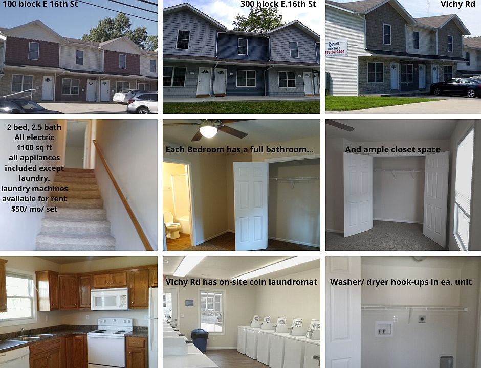 Situated on the hill at Vichy Rd, this cute townhouse is so close to the downtown area, shopping, and the highway, but still so quiet. Each of the townhomes are equipped with a fridge, stove/ oven, dishwasher, and hookups for your laundry machines. If you would like to rent a set through us, it is an additional $100 per month.
