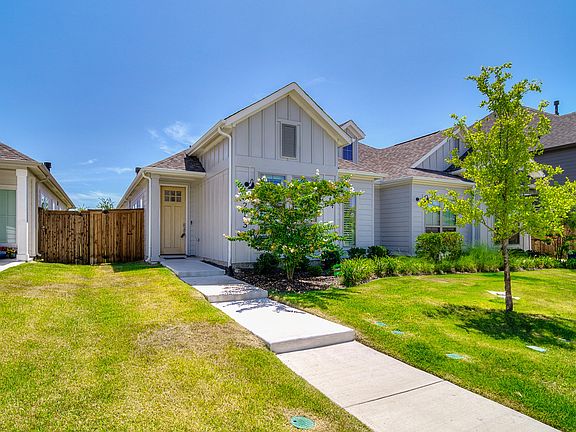 Step into this stunning townhome filled with natural light from walls of windows and soaring high ceilings. Elegant details abound, including 8-foot doors, 6-inch baseboards, and timeless plantation shutters that enhance the home's sophisticated charm. The chef-inspired kitchen is a true showstopper, featuring sleek cabinetry, gleaming quartz countertops, a gas cooktop, a spacious island, and a built-in wall oven and microwave. A generous walk-in pantry and thoughtful design upgrades throughout make this kitchen as functional as it is beautiful. With 3 bedrooms and 2 full bathrooms in a desirable split-bedroom layout, this home offers comfort and privacy for everyone. The open-concept living and dining areas are perfect for both relaxing and entertaining. All of this is nestled in the heart of the premier master-planned community of Walsh Ranch where modern living meets classic style.