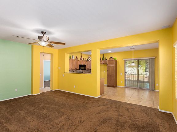 Fantastic single level home w/a charming paver courtyard entry. Plush carpet, ceiling fans, window blinds, & patio access from eat-in kitchen. Granite kitchen counters, tiled backsplash, beautiful tile floor, recessed lighting, pantry, & handsome wood cabinets w/hardware. 3 Bedrooms, large closets, interior laundry room, & 2 pristine baths. This is the perfect starter home! Meticulous backyard setting w/a covered paver patio, fire pit area, palm trees, & room for a pool. Community Pool, Park, Playground, & Sports Field. Take a tour today!