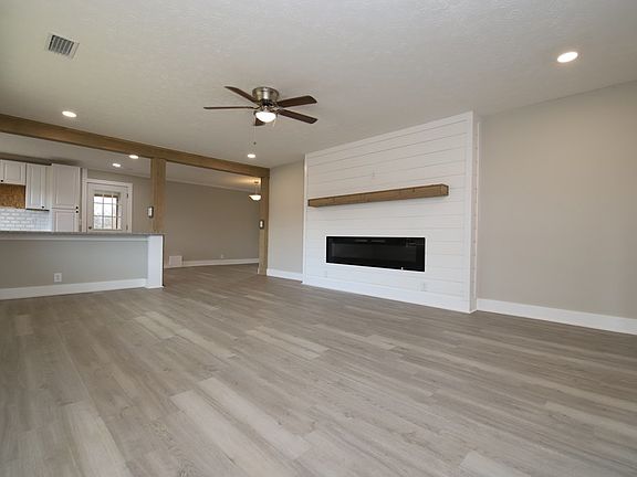 3 bedroom, 2 bath four-sized brick home overlooking private lake stocked with crappie, bream and bass. Remodeled, gutted to studs with new sheetrock or brick walls. New HVAC & duct work. New wiring, plumbing, cabinets, countertops, and fixtures throughout. New appliances. New deck overlooking the lake. Metal roof only 3-4 years old. Additional 4 acres lot may be available, call listing agent for details.