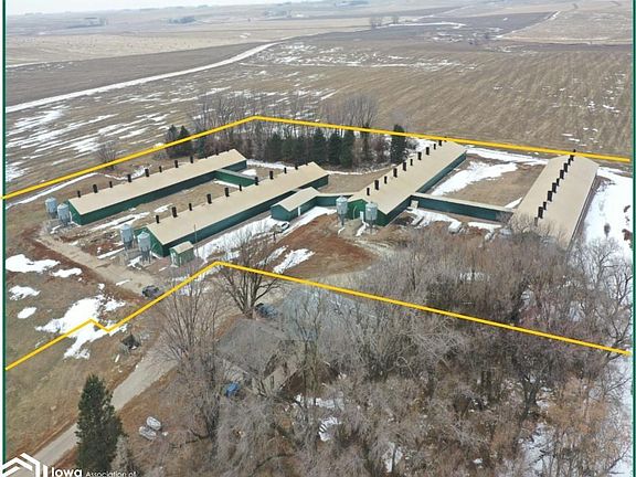 Four, 1,000 head hog finishing buildings built in 1998 located approximately 9 miles southeast of Remsen, Iowa at 21135 Tamarack Ave All barns are 40’ x 200’ with an 8’ pit. The barns are wood-framed with poured concrete stem and fully insulated walls. The site was built in 1998 and remodeled in 2015. All buildings have the SKOV thermostatically controlled, ceiling mounted 36” and 24” exhaust chimney fans with actuated ceiling mounted air inlets. There are two, 12-ton feed bins per building. PVC flex auger delivers feed to double sided, SDI stainless steel, wet/dry feeders. There are nipple waterers in the feeders. A well is shared with an adjacent home with rural water as the backup. Contact agent for details. There is an electric heated 48’ x 20’ office. Seller has additional hog buildings for sale in Harrison and Plymouth County. See Hertz website and/or contact agent for details. Contact agent with Co-op fee questions.