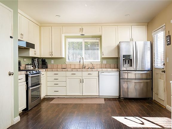Cute home with nice yard on quiet street. Driveway accommodates a large (40') RV as well as a few cars. Great home for kids. Rosedell Elementary School, an awarding winning school, is a couple of blocks away. Copper piping. New windows/slider, newer: carpet, ducting, baseboards, recessed lighting, flat ceilings, water heater, blinds, pressure regulator, stove. Ceiling fans in most rooms, open kitchen/family room, dark laminate floors. Large living room with fireplace. Family room is currently used as an extension of the kitchen with a large dining table, but can be a family room. There is space in the kitchen for a table if so desired. Nice covered patio and grassy yard.