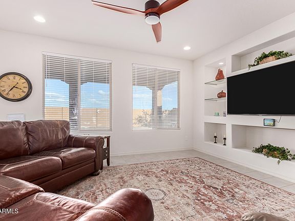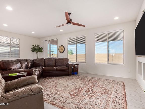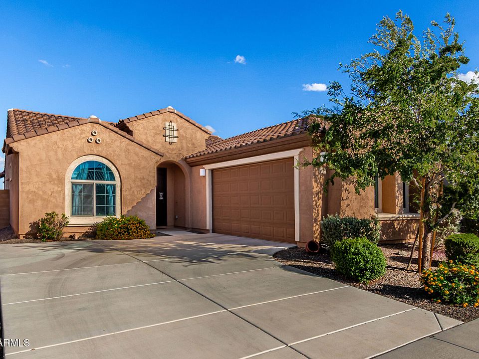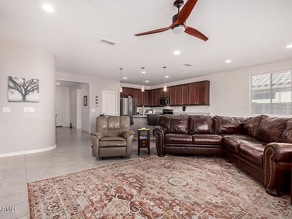Every bedroom is thoughtfully positioned so that no two share a wall, offering rare privacy and peaceful retreat spaces for everyone. The primary suite features a walk-in closet and a spacious bath designed with both style and function in mind. Outside, your private backyard oasis awaits with no homes behind you, you'll enjoy unobstructed views and plenty of serenity. A covered patio provides shade for relaxing afternoons, while the firepit area invites cozy evenings under Arizona's starlit skies. Additional highlights include a side-entry garage that enhances curb appeal, energy-efficient design elements, and over 1,700 square feet of well-planned living space. Located minutes from scenic parks, golf, and local dining, this property offers the perfect blend of lifestyle, comfort, and location.