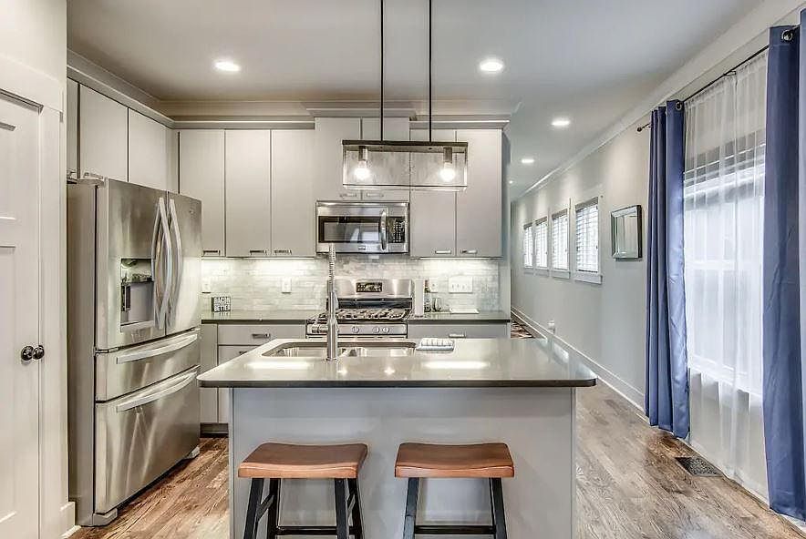 Minutes from downtown Nashville! Complete with garage gym and custom Swedish hot sauna (not infrared). Great location with easy highway access and short drive to restaurants, bars, farmer's market, Ascend Amphitheater, Nissan Stadiums, and First Tennessee Park in Germantown. Within walking distance to Slim & Husky's, The Southern V and other restaurants! Open floor plan with amazing hardwoods, large kitchen island/bar, huge master shower, and great back deck. Attached garage with parking pads in both the front and rear with parking for 4 cars.