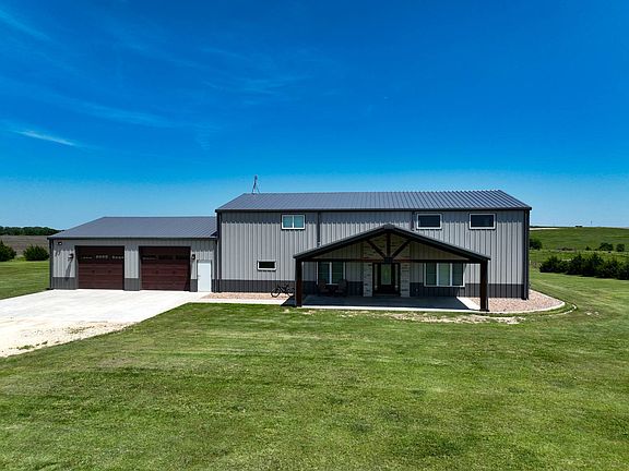 Nestled on 47.28 scenic acres in North Central Kansas, this recently built country home offers the perfect blend of space, comfort, and high-end utility-just minutes from Beloit and a short drive from the recreational haven of Waconda Lake and Glen Elder State Park. This spacious home features five bedrooms and three bathrooms, with the potential to easily add more living space to suit your needs. At the heart of the home is an impressive 1,200 square foot great room-a true showstopper-ideal for family gatherings, entertaining or simply enjoying the open feel and natural light that pours in. Thoughtfully designed with comfort and efficiency in mind, the home includes heated floors on the main level, a tankless high-output water heater, forced-air heating, and cooling, as well as a mini-split system for flexible climate control throughout the house. Attached to the home is a massive 1,600-square-foot garage, fully finished and ready to handle vehicles, storage, projects or all of the above. For even more versatility, the property also includes a fully insulated 40x50 shop complete with a wood stove and its own bathroom-ideal for a workspace, hobby shop or home business. A 16x32 livestock shed adds further functionality, especially for those looking to run animals or 4-H projects. The 43-acre pasture is fully fenced and offers a beautiful mix of open ground and wildlife habitat. Whether you're managing livestock, enjoying the outdoors, or exploring your private slice of Kansas countryside, the property is laid out to support it all. The area is well known for its hunting, with a strong presence of whitetail deer, pheasants, and turkeys. Several species of wild game have been successfully harvested here, making it a great opportunity for any outdoor enthusiast. This property is also currently enrolled in a local tax revitalization rebate program, with approximately six years remaining-an added financial benefit to the next owner. From its upgraded systems and generous living space to its stunning views and recreational potential, this home truly has it all. If you're looking for peaceful country living without sacrificing modern amenities, this property deserves a closer look. Details: 5-bedroom, 3-bathroom home with room to expand 1,200 sq ft great room with 23' ceiling peak Heated floors on the main level Tankless high-output water heater Forced air HVAC and mini-split system 1,600 sq ft fully finished attached garage 40x50 insulated shop with bathroom and wood stove 16x32 livestock shed 43 fully fenced acres Excellent deer, turkey and pheasant hunting Beautiful views of the Kansas countryside Minutes from Beloit and Waconda Lake Enrolled in a tax revitalization rebate (approx. 6 years remaining)