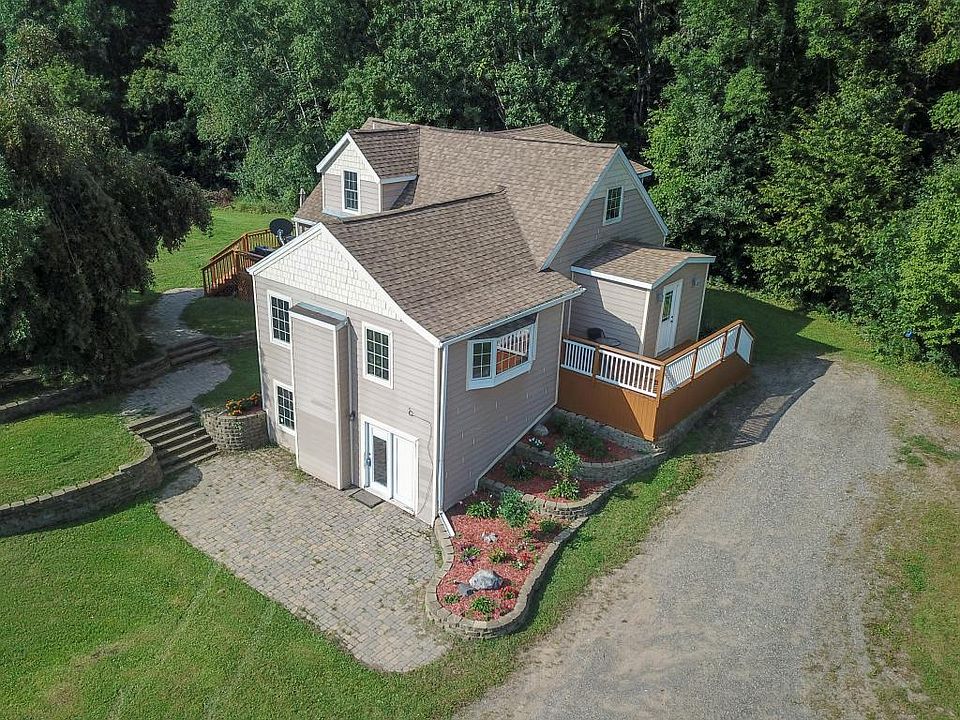 Privacy awaits! 22+ Acres set-back from the road w/access to the snowmobile trails at the end of the driveway! Remodeled kitchen w/new granite counters, back splash, cabinets & floors. Brkfst bar & dining room large enough to fit 10+. Patio access to 1 of 3 decks. Gas FP in LR. Huge master suite w/jacuzzi & sep. shower, double sinks & multiple closets. LL family/game room walks out to patio. 30x40 pole barn/garage for all of the toys, cars & horses! Ample yard space & still have your privacy!