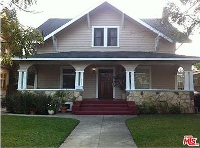 Move in ready Craftsman charmer. Light and bright, with fresh paint, gleaming hardwood floors and box beamed ceilings in living room and dining room. Nicely updated kitchen with silestone counters and a pantry. First floor also has a cozy den off the living room, perfect for a media room. Generous closets in all bedrooms. Master has two walk in closets. One could be used as a bonus room for office or nursery. New carpet on second floor. Spacious updated spa bath with double sinks, shower and jacuzzi tub. Backyard with drought tolerant garden and large deck, perfect for entertaining. Whole house is wired for a sound system. This property is listed with a location company and has been used for filming, so there is potential for extra income, in addition to its many other attractions. Discriminating buyers will love this one.