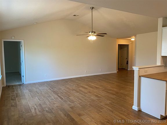 3/2 Broken arrow schools. Natural light floods the Open floor plan. Living has vaulted ceiling. Kitchen has granite, gas range/oven, fridge, microwave/venthood, and blends into dining area. Primary bedroom has private bathroom w/ walk in closet. Large bedrooms. 2 car garage. Fenced backyard overlooks Broken Arrow Athletic Club golf course. House is by paved walking trail which is a short distance from a pond and playground. Pet restrictions/deposit may apply. No Smoking, No Sublease, No Waterbeds. Tenants are required to have renters insurance. Or we offer a Residents Benefits Package (RBP) for $55/month. Please ask for more details.