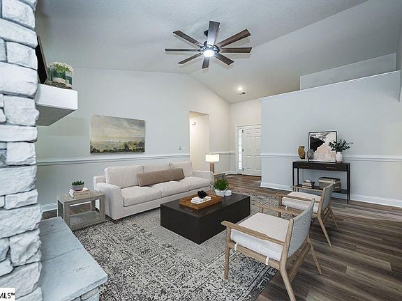 Charming one-story ranch home situated on over 1/2 acre in Greer, SC, just across from Greer Golf Center. This recently renovated gem features new flooring, paint, fixtures, hardware, and finishes throughout. The inviting covered front porch welcomes you into a beautifully updated interior. The granite kitchen boasts new stainless appliances and a cozy breakfast area. Entertain in the formal dining room or relax in the great room with its stunning vaulted ceiling and stone fireplace. The primary bedroom offers a serene retreat with a tray ceiling, sitting room, walk-in closet, dual vanity, soaking tub, and separate shower. Step outside to enjoy the outdoors on the deck overlooking a grassy, private backyard with a wooded buffer. The property also includes a two-car garage (new garage door) for ample parking and storage. With a renovated kitchen and bathrooms, this home is move-in ready and perfect for modern living. Don't miss the opportunity to make this stunning home yours!