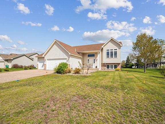 Move in ready and well maintained 3 bed/3 bath/3 car garage home situated on an oversized lot across the street from the Dakota Trail. Main level features 3 bedrooms on one level, vaulted ceilings, laminate flooring, kitchen with center island & sliding door off dining area to future deck. Private primary bedroom with private bathroom and walk-in closet. The home has plenty of room for expansion in the lower level! Lower level bathroom is already completed. The lower level has potential for 2 additional bedrooms and a family. 3 Car Oversized Garage perfect for all your extra toys.