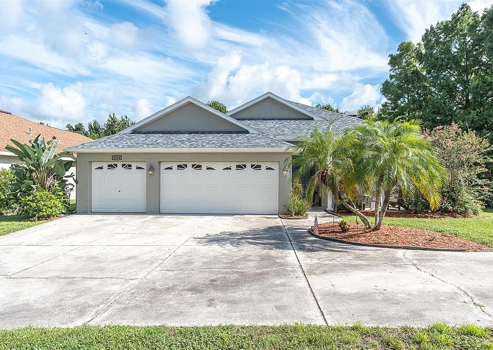 DON’T MISS THIS CUSTOM BUILT, ONE OWNER SAMUELSEN HOME, ON ONE OF THE MOST PRIVATE LOTS IN FOX WOOD! Situated on .3 acres, this 3 Bedroom 2 Bath 3 Car Garage Home is Positioned on the Last Lot on the Street, Backing up to Over 13 Wooded Acres owned by Trinity HOA. As you Drive up to this Beautiful Home, the Oversize Driveway Provides Plenty of Parking for family and Guests. From the Driveway, you’re Greeted by a Quaint Front Porch with Round Columns and a Sitting Area. The Tiled Entry Foyer leads to an Open Great Room with Sliding Glass Doors, Overlooking the Pool and Private Yard. The Great Room also Features a Cozy Corner Fireplace for those Cool Florida Evenings. This Home has a Formal Dining Area that could also be an Office / Workspace. The Kitchen is open to all Activities; Equipped with a Large Breakfast Bar, and Separate Breakfast Area with Sliding Glass Doors leading to the Rear Lanai and Pool. Right off the Kitchen is an Inside Laundry Room going into a Spacious 3 Car Garage. The Split Bedroom Plan offers a Separate Bedroom and Bath Wing for Guests that can be Closed via a Pocket Door. The Master Bedroom Features a Multi-Stepped Trayed Ceiling, with Windows Overlooking the Pool and Private Rear Yard. The En-Suite Bath has a Soaking Tub, Glass Enclosed Shower, and Quartz Vanity with Double Sinks and Two Decorative Mirrors. Both Guest Bedrooms are Good Sized Sharing a Hall Bath with a Granite Counter Top. Talk about Entertaining, step Outside to the Covered Lanai and Large 14 X 28 Screened-in-Pool. The Side and Rear Yard offers Privacy for the Pool and Outdoor area, while the Wooded Setting Provides the Feeling of being in your Exclusive Oasis. Outside the Pool enclosure is an Extra-Large Fenced Yard with room for a Fire Pit, Horseshoes, Play Area and much more! Improvements Include: NEW ROOF 2023, NEW A/C 2017, NEW Exterior PAINT 2022, NEW PAINTED & RE-SCREENED POOL CAGE 2022, NEW POOL PUMP 2025, NEW REFRIGERATOR(S) 2024, NEW DISHWASHER 2024, NEW MASTER BATH QUARTZ TOP 2022, NEW GUEST BATH GRANITE TOP 2022. NO Flood Zone – NO Flood Insurance. Fox Wood is a Gated Community in the Heart of Trinity, with Affordable HOA fees. Fox Wood has a Community Park with 2 Playgrounds, Basketball Court, Soccer Area, Gazebo, 2 Walking Trails and Picnic area. Fox Wood is only minutes from Schools, Shopping Centers, Restaurants, the Suncoast Parkway and Tampa International Airport. This won’t last long! Call for your Private Showing Today.