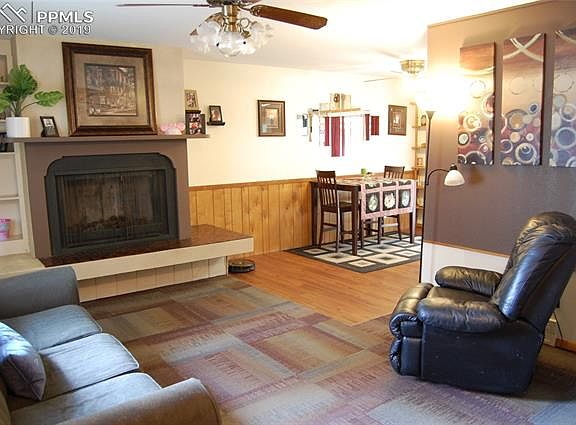 This 3 bedroom, 2 bath, 2 car garage welcomes guests w/ covered front entry. The main level features living room w/ large wood burning fireplace and built ins, dining room walks out to back yard and covered patio and is open to the kitchen. Upstairs boasts master w/ hardwood flooring, shared full bath and additional bedroom also w/ hardwood flooring. Lower level features family room, bedroom and shared full bath. The oversized 2 car garage features workshop. This back yard is fully fenced and features RV parking. This home is located close to schools and parks with easy access to shopping and entertainment. Easy access to I-25 for a quick commute to downtown Colorado Springs. This home boasts newer flooring, fresh paint and a brand new roof coming soon!