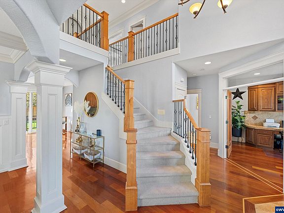 This custom-built home is a true showpiece! Set in one of West Salem’s most desirable neighborhoods, the exterior impresses with striking stonework, a stamped concrete walkway, and mature palm trees framing the elegant double-door entry. Inside, Brazilian cherry floors & a soaring 19-foot entry ceiling set the tone for the home’s exceptional design. Every detail reflects quality craftsmanship, from the 7-inch baseboards to the custom wainscoting throughout. Room for Rv parking on side. Schedule a showing!