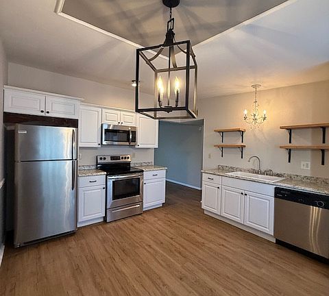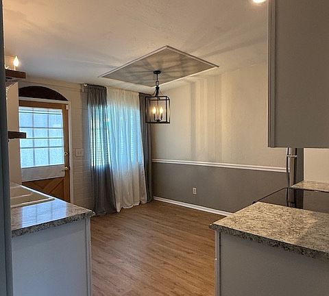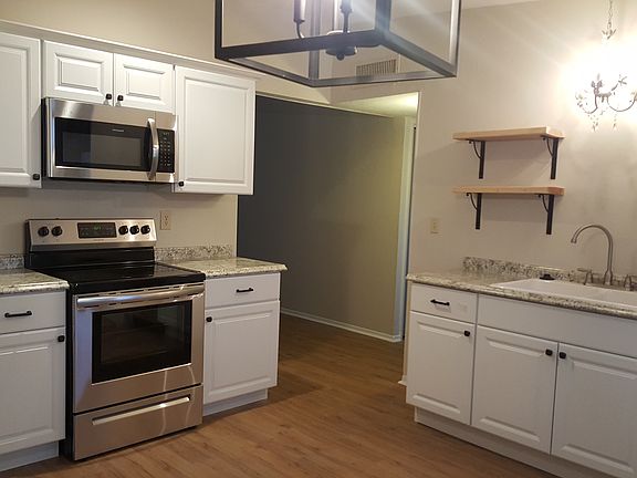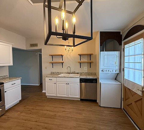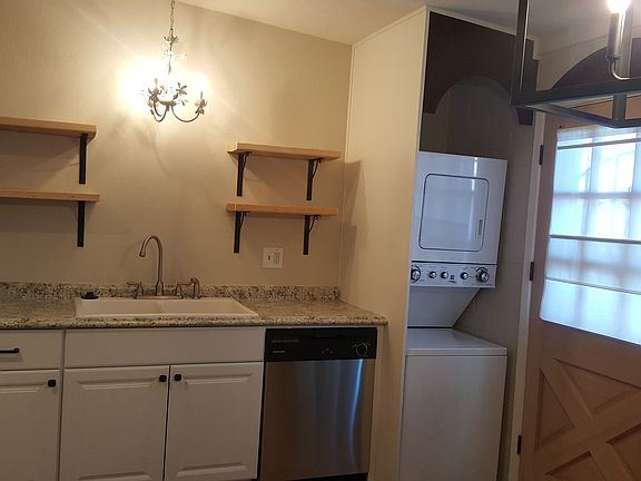 Freshly painted adorable duplex with French Farmhouse decor. This lovely space is a double brick home with plenty of parking right out in front. The backyard boasts a large covered porch and is private. The kitchen comes equipped a stainless steel fridge, electric range, built in microwave, disposal, stainless dishwasher, double bowl sink with stainless faucet, open shelving and washer/dryer. It is an eat in kitchen with room for your dining table accented by a farmhouse chandelier. The entire home has vinyl wood plank flooring, NO carpet!! There is custom lighting in every room, wood blinds with french farmhouse curtains, and custom paint. The bathroom has a tub/shower combo with a wood valence and an antique furniture style vanity. The hallway has a linen closet, the living room has a large coat/storage closet and both bedroom have large closets. The smaller bedroom has a walk in closet. The master bedroom is large enough for a king sized bed with room for night stands. The home has central AC-heat. The rent included water, sewer and trash. This home is in a cul-de-sac, quite and private. The location is great, close to everything yet still very private. If you check in, you won't want to leave. Washer/dryer is included.