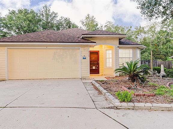 Step into this charming and cozy 3- bedroom 2-bath home tucked away in one of Gainesville's most peaceful neighborhoods. This spacious home offers an open layout filled with natural light from the beautiful bay window, creating the perfect space for family gatherings or quiet mornings with a cup of coffee. Outside, you'll find a charming front yard with thoughtful landscaping and a private backyard ideal for pets to run, or evenings spent relaxing under the trees. A two-car garage with plenty of space for storage and everyday convenience. Located just minutes from local parks, top-rated schools, shopping, and the University of Florida, this home offers the perfect blend of comfort and convenience for any family. Enjoy access to a sparkling community pool, wellness center, tennis court, and family park. Everything you need for fun, relaxation, and connection close to home. Call today to schedule your private tour!