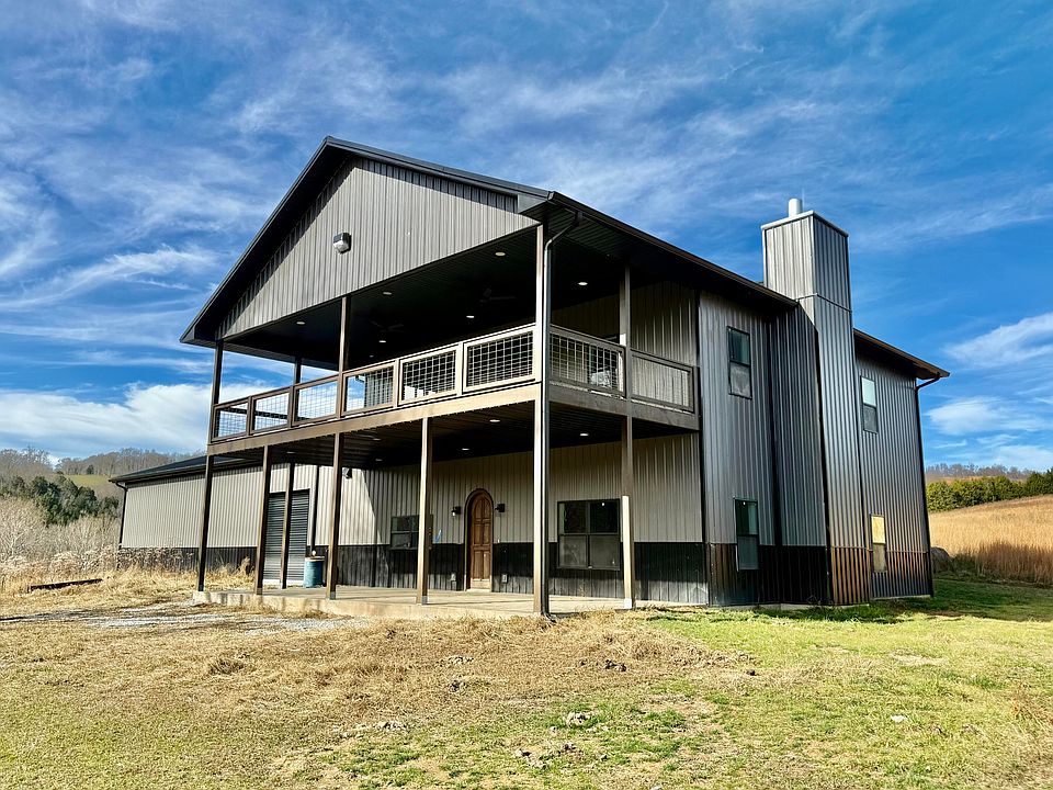 At the heart of the property sits a newly constructed 3,200 sq. ft. barndominium, designed with both comfort and practicality in mind. This 3-bed, 3-bath residence features 10' ceilings, walk-in closets, dual HVAC systems, propane hookups, a water filtration system, and a large 1,100-gallon septic system suited for the home's scale. Two 16'x40' covered porches overlook the surrounding land, providing exceptional outdoor living space with long-range views across the ridges and pastures.