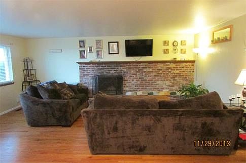The living room features brick fireplace, The dining area has hardwood floors to include kitchen, entry and hallway. Home has newer interior paint, completely remodeled kitchen with granite counter tops and tile. All appliances stay. Home has a huge deck and master bed has master bath. It has one bedroom down with great over-sized family room. Additional features include fireplace wood insert, entertainment space with eating bar, over-sized mud room with washer and dryer that stay, and one-car garage. Property is fenced and lies on .26 of an acre!