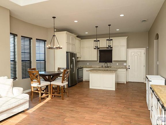 Tile flooringSeamless flowBeautiful granite countertopsSpacious kitchenOpen-concept layout