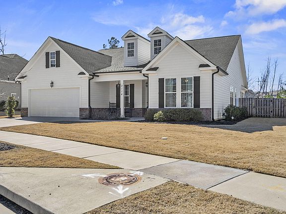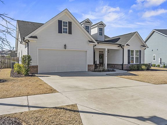 #WhatADream Discover your dream home in the heart of Grovetown! This stunning single-family home offers an inviting blend of comfort and style, featuring 3 spacious bedrooms and 3 modern bathrooms. Step onto the enchanting 15x9 rocking chair front porch, perfect for relaxing evenings. The interior boasts elegant hardwood flooring and quartz countertops throughout, creating a warm and inviting ambiance. The home office, complete with French doors, provides a private and productive workspace. The thoughtfully designed mud area ensures organization, while the well-appointed laundry room features overhead shelving and a convenient folding table. The great room, with its gas log fireplace and cozy window seating with cubbies, is perfect for gatherings and relaxation. The kitchen, overlooking the great room, is a chef's delight, featuring a 9ft island, stainless steel appliances, abundant cabinet space, and a custom-tiled backsplash. The master suite is a serene retreat with tray ceilings and a spacious 12x7 master closet. The luxurious master bath offers tiled flooring, dual vanity sinks, a makeup station, a custom-tiled shower, and a relaxing soaker tub. Enjoy your mornings in the charming breakfast area that overlooks the rear patio with sliding glass access. The fenced-in rear yard provides privacy and security, while the covered back patio (18x12) is perfect for outdoor entertaining. Don't miss the opportunity to make this exquisite home yours.