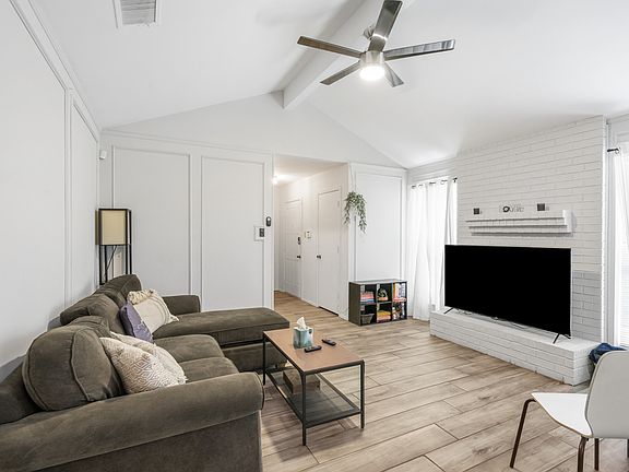 Welcome to this beautifully maintained and fully furnished 2-bedroom, 2-bathroom half duplex, perfect for homeowners or investors alike. Step inside to a spacious living room with stunning vaulted ceilings, creating an open and airy feel that’s perfect for relaxing or entertaining.