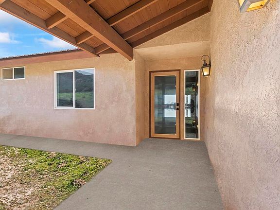 Wow! 5 acres with panoramic views of the pastoral valley and majestic mountains with rolling to sloping terrain and ideal for the horse/animal enthusiast, gardener or??? This property features the rare animal designator "O" which allows an unlimited amount of animals and other uses (note attached zoning report) and is serviced by a private well. The home has been recently remodeled and features a covered porch entry to open great room with wood laminate floors throughout with exception of baths and kitchen which are tile. The home has bull nosed corners, two tone paint, dual paned windows, vaulted ceiling to spacious living/dining combo with inviting corner wood burning stove, slider to rear patio with desirable aluminum patio cover and forever views. The kitchen is fabulous with butcher block counter-tops, breakfast bar, upgraded appliances to include the Advantium micro/convention oven in addition to second oven, five burner range top , pantry, FARM SINK, pantry and side door to covered patio for those sunsets/sunrises and fabulous BBQ's. The master suite is located opposite wing of two other bedrooms and is enhanced with a barn door entry to attractive bath with magnificent, tiled shower with accented band, double KOHLER sinks, tiled floors and walk in large closet. A roomy guest bath services other two bedrooms and equally as nice. You will appreciate the attached two car garage with roll-up door and room for your cabinets/workshop space. A must to see!