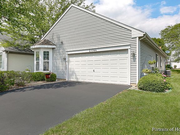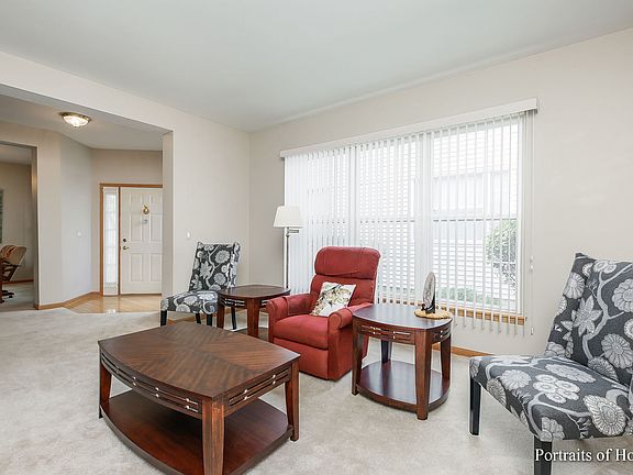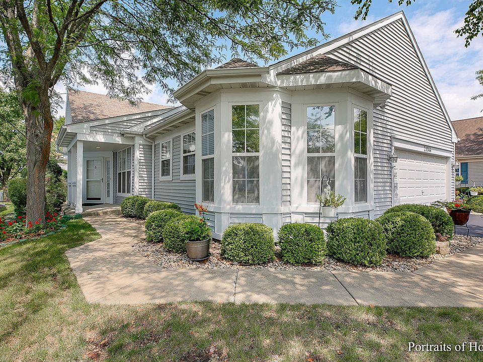 Wonderfully maintained 3 Bed, 2 Bath single family Ranch located in Plainfield's 55+ Carillon Community. This Mission Hills floorplan offers comfort and functional main floor living. From the formal entryway, you'll find a comfortable living room made for entertaining on one side, and a spacious dining room on the other. Bright and open kitchen with hardwood floors, ample cabinets, and breakfast nook overlooking beautiful views of the neighborhood. Conveniently located off the kitchen is the laundry room with shelving for additional storage. Primary suite boasts two closets, one of which is a walk-in, and and en-suite bath with separate tub and shower each with grab bars. Two additional bedrooms share adjacent full hall bath. Enjoy the peaceful outdoors on the large brick patio with access from the living room. Updates include: 2022: Dryer; 2020: Storm doors, Water Heater; 2016: Washer, Microwave, Window Treatments; 2009: HVAC. Carillon resort-style community offers an array of amenities, including three pools, tennis courts, a clubhouse with various activities, three golf courses, and a restaurant. You won't want to miss this opportunity! Home is being Sold AS-IS