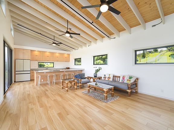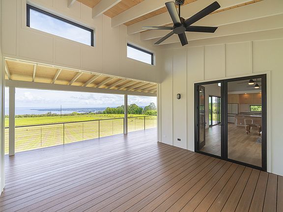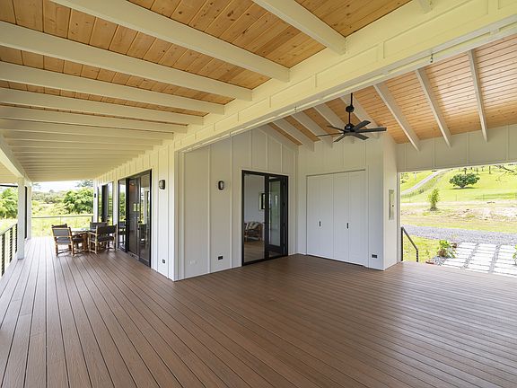 Designed with the utmost consideration for safety and durability, this home offers peace of mind with its earthquake, hurricane, flood and fire resistant features. From oversized footings and stem walls to robust posts, headers, and external wall framing, every aspect of the construction has been thoughtfully engineered. The home features modern touches and high-end finishes throughout. Pella aluminum-clad wood doors and fiberglass windows offer both beauty and energy efficiency, allowing natural light to fill this space while also providing passive cooling. Exposed rafters and tongue and groove ceilings extend through the entire residence. Silestone quartz kitchen countertop, top-of-the-line Samsung Bespoke appliances, and custom cabinetry creates an ideal space for culinary endeavors. Custom built-ins provide ample workspace and storage. Hunter ceiling fans keeps each room cool and comfortable while Lutron dimmers paired with energy-efficient lighting sets the ambiance. Soaking tubs and outdoor showers with Grohe thermostatic fixtures create a spa-like experience. This home also offers the convenience of being serviced by local utilities, with HECO underground power, Hawaii County water, and Hawaii Telcom internet. Nothing was spared to make this home a one of a kind gem.