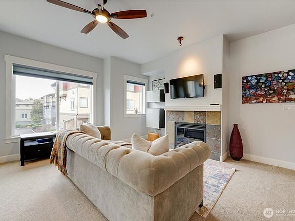 Explore this 3-bed, 2 and 3/4 bath Bothell/Thrashers Corner townhome in the contemporary Altura community. Main level offers welcoming livingroom with gas fireplace, large windows with top-down window shades, updated kitchen with gas stovetop and oven, and eating bar. Bedroom on main level with 3/4 bath and access to patio to enjoy your morning coffee. Move upstairs and enjoy 2 full primary suites with 4-point baths and walk-in closet, large landing area, laundry, and plenty of storage. On the lower level, enjoy 2-car tandem garage with huge area for storage. Direct access to interior from the garage. Ideal location for Bothell shopping and quick access to I-5.