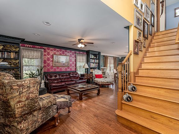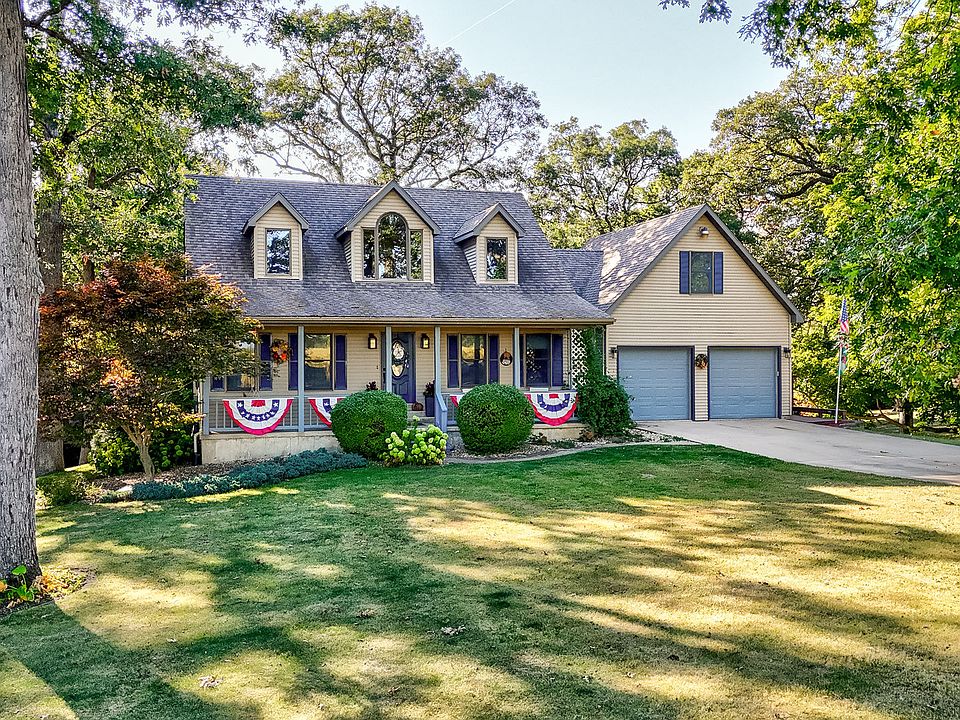 Nestled on nearly an acre among mature trees and open farm fields, this 4 bedroom, 2.5 bathroom two story home combines elegance, comfort, and functionality in a serene setting just minutes from Starved Rock State Park. Curb appeal abounds with its beautiful landscaping, large covered front porch, and charming dormers. Inside, the grand foyer greets you with an elegant staircase and a stunning chandelier. The living room invites you in and flows seamlessly to the formal dining room, both highlighted by elegant hardwood floors, custom built-ins, and stylish lighting. The updated kitchen impresses with desirable cabinetry, butcher block counters, an island, table space, tile flooring, custom hand-made light fixtures, and appliances including a range with indoor grilling capabilities. The main-level primary suite continues the appeal with hardwood floors, a spa-like en-suite featuring a whirlpool tub, walk-in shower, and a walk-in closet. Completing the first floor are an updated half bath, a laundry nook, and ample storage. Upstairs, two spacious bedrooms with cozy sitting nooks, a variety of closet space, and their own HVAC systems provide personalized comfort, while a full bathroom adds convenience. A versatile fourth bedroom/bonus room offers abundant space, custom built-ins, an electric fireplace, and its own HVAC system for personalized climate control. Additional highlights include updated trim and mouldings, solid six-panel oak doors, skylights, an on-demand water heater, and plentiful closet space throughout. The fully insulated, heated and air-conditioned 2 car attached garage adds practicality year-round for vehicle space, storage, and workshop capabilities. A walk-out basement with tall ceilings offers excellent storage, workshop potential, or future finishing options. Outdoors, enjoy the wooded backdrop, tiered covered deck, paver patio, landscaped yard with raised beds, and a storage shed. This custom home blends timeless design with modern updates in a truly peaceful setting. An exceptional opportunity near one of Illinois' most treasured destinations.