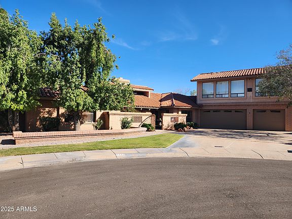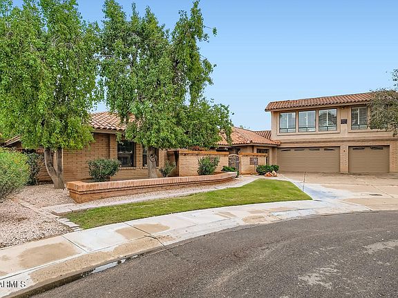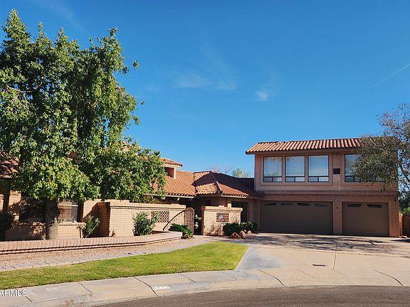 A beautifully kept Hacienda style, slump block home in Tempe. One of the largest homes in the surrounding area that has the warmth and charm of our western culture. The large lot with the backyard and cul-de-sac setting gives you quiet and privacy for entertaining, offering a number of separate sections and a large RV gate to the alley that has a double cement slab and a drive thru garage bay for easy hook up for campers and boats. The large Artist /Yoga/Man cave/game room studio over the 3 car garage with a separate office space with great light and North window light offers is a huge bonus for the active family. No HOA!