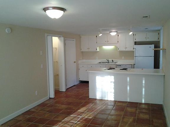 This is an open concept one bedroom, one bath with stove, refrigerator, dishwasher, washer/dryer furnished. This unit features tile floors throughout. Off street parking.