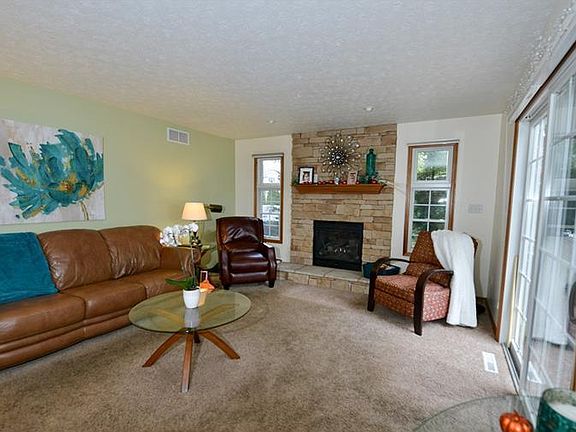 This house says "Welcome Home" the minute you walk in the door! 2-story foyer makes a grand entrance to this 4-bedroom 2.5 bath home with open kitchen/dinette/family room area with stone fireplace and patio doors leading to a relaxing deck. The park-like back yard will draw you in, with its lush landscaping and firepit. Dining room is big enough for family dinners, and the whole house is perfect for entertaining. Upstairs bedrooms are large, with master en suite, 2nd bath and convenient laundry room. Unfinished basement has many possibilities for extra living space and storage. Excellent storage in garage w. built-in shelving and workshop area. Security system and home warranty!