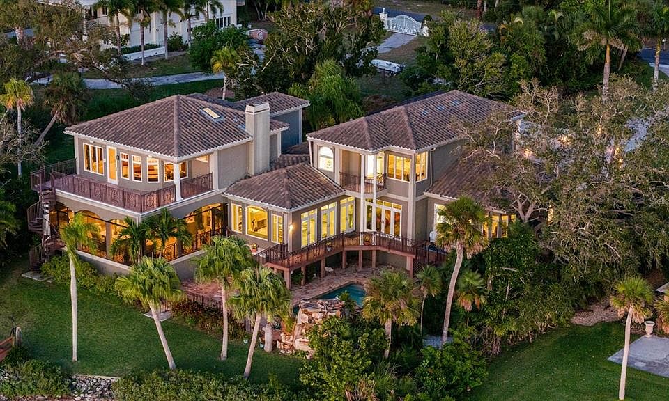Experience unmatched privacy, security, and elevated waterfront living on Sarasota’s coveted Blackburn Bay. Nestled behind private gates within an exclusive three-home enclave with no monthly HOA dues, this 0.58-acre estate combines engineered resilience with luxury amenities—ideal for discerning full-time or seasonal residents. Positioned on a historically storm-safe mainland site and elevated at 11', the residence provides exceptional peace of mind. A full-property security system, hard-wired cameras, automated lighting, integrated speakers, and remote-programmable HVAC support effortless, lock-and-leave living. A brand-new deep-water dock (completion Nov. 2025) will feature composite Trex decking, a 14,000-lb lift, two jet ski lifts, and dual land-based ramps. Direct, no-bridge boating offers fast access to the Gulf, excellent fishing, and daily dolphin sightings just feet away. A newly built 925 sq.ft. all-block garage (2024) offers 10' ceilings, storm-rated doors, 6" 4,000 PSI concrete (lift-ready), full insulation with HVAC, and a metal roof engineered for future solar. Elevated at approx. 9’4”, it connects directly to the home for convenient all-weather access. Inside, approximately 6,000 sq.ft. of luxury space showcases new high-gloss 2’x2’ porcelain floors, fresh paint, and panoramic bay views from major living areas and every bedroom. The custom built 2024 chef’s kitchen features a Wolf gas range/ovens, Sub-Zero refrigeration, new Cove dishwasher, 21.7 cu.ft. freezer, rollout coffee system, instant hot water, granite surfaces, and custom cabinetry. The expansive family room with full bar opens to a screened waterfront pavilion with outdoor kitchen, fireplace, and views of the large bayfront pool with waterfall. The dining room includes new lighting and upgraded storm-rated patio doors framing a dramatic 45-degree water vista. Multiple ensuite bedrooms ensure comfort and privacy. The main-floor guest master offers bay views, patio access, and a spa bath with jacuzzi. Upstairs, two guest suites include private patios, walk-in closets, and upgraded storm doors. The primary suite has a commanding 100-degree bay panorama, private terrace, spa bath with instant-hot water, and extensive custom closets. Major systems have been meticulously maintained: four newer HVAC units (quarterly serviced), two new central vacuums, a commercial-grade 300-gallon reverse osmosis system (rebuilt 2024), 1-year-old elevated whole-home Generac generator with large LP tank, 1,350-gallon septic (serviced 2024; city sewer available), impact windows/doors with electric shutters, programmable power blinds, and impressively low electric costs averaging $302.62/month. Exterior enhancements include 2024 irrigation and sod, new driveway pavers, concealed trailer parking, and a picturesque Lychee tree-lined entry with 21 producing fruit trees including figs. This rare waterfront estate delivers the ultimate combination of privacy, engineered security, and protected deep-water access—all wrapped in timeless coastal elegance. A residence designed to outperform expectations. Contact for your private showing.