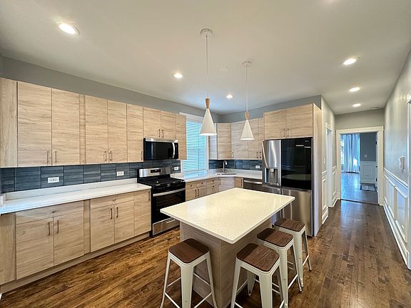 We now offer virtual video tours of all of our apartments! Schedule a virtual tour and rent this apartment from the comfort and safety of your home! Apply online! Be the first to live in this amazing three bedroom, one bathroom total gut rehab in Logan Square! This unit features modern kitchen with quartz countertops, island with breakfast bar, stainless steel appliances, dishwasher, microwave, fridge with ice maker, separate dining room with built in hutch and beverage cooler, large living room with exposed brick wall, newly refinished hardwood floors throughout, spacious bedrooms, awesome closet space with Elfa organizer system, newly rehabbed bathroom with oversized soaking tub, central heat and air, laundry in unit, cats welcome, rear deck with patio furniture with seating for six included. shared yard space, and one garage parking spot included! Won't Last Long!