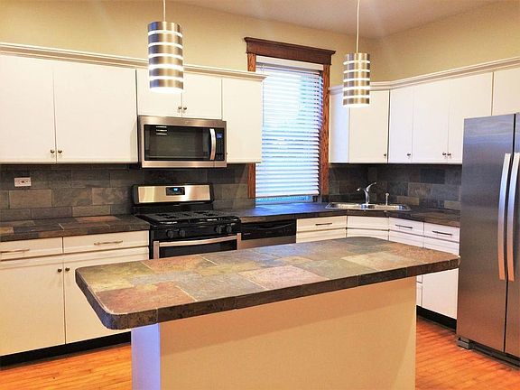 This gorgeous apartment is available now! It features stunning vintage features and modern amenities. Special features include: Gas forced air heating and central air conditioning. Gorgeous exposed brick wall in the living room. Huge kitchen with stone finishes, a work island, and a full stainless steel appliance package. Full dining room with beautiful oak tray ceilings and built-in hutch. Renovated bathroom with stone finishes, shower and oversized soaking tub. On-site laundry facilities. 1 garage parking space is available for $50 per month. Great big backyard for summer barbeques and space for your private garden. Prime location near Scofflaw, Ground Control, Giant, and Best intentions on Armitage Avenue's Restaurant Row. 3 blocks from 606 trail access, 2 blocks from Palmer Square Park and 0.8 miles from the Blue Line. Just a short hop to Bucktown and Wicker Park and the Logan Square Farmers market. $195 per adult applicant non-refundable move-in fee ($500 minimum) due at lease signing. No security deposit required. Broker owned. Owner pays for trash and sewer. Tenant pays gas and electric.