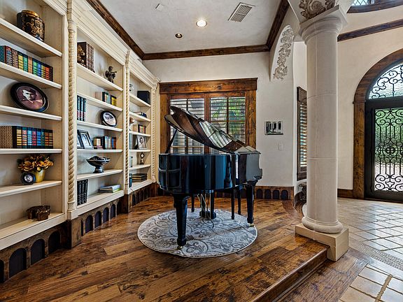 Indoor-outdoor poolBeautifully landscaped groundsPartially treed lotSoda shop counterWorkout roomGracefully-arched doorwaysRustic facades