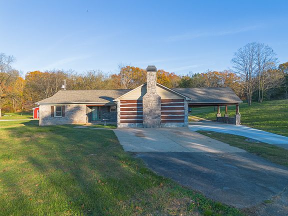 Welcome the Family Paradise. This home has something for every member of the family. Set back off the road, park under the new carport and walk into a large den with a rock fireplace in the center of a wall of 200 year old logs reclaimed from a home in Maury Co. As you move through the house you enter the kitchen of your dreams, complete with 2 refrigerators, 2 ovens, Granite counter tops, tile back splash, an island, and a separate bar complete with wine cooler and copper sink. Off the kitchen is the primary bedroom with granite top double vanity, large, walk in closet, and oversized shower. The other 2 bedrooms and bath have fresh paint, and granite vanity in the bathroom. Step outside on the back porch to your new favorite spot to relax. Complete with hot tub and granite bar top. Property also has a detached 2 car garage/shop, 2 stall horse barn with wire enclosed coop ready for your small critters, and walk up the hill to the over the top treehouse. Your slice of paradise awaits as you are minutes from I 65 for easy access to Franklin Nashville and Huntsville, Columbia and Spring Hill are only 10 minutes away. Zoned for the STEM Elementary Randolph Howell and the brand new Battle Creek High. New roof, HVAC new 2022, tankless hot water heater. The uniqueness of this property is nearly unmatched. It's a must see to appreciate all it has to offer.