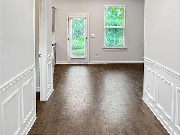 The Hamrick plan built by DRB Homes at the Preserve features a large open concept kitchen with island, painted cabinets, quartz counters, stainless steel appliances and is adjacent to the breakfast area. The great room features a gas fireplace, brick hearth and shiplap accents. The formal dining room includes a beautiful coffered ceiling. All bedrooms are upstairs including the primary suite with sitting area, oversized walk-in closet, dual vanity, garden tub and walk-in shower. Upper level laundry. Enjoy all the amenities this active community has to offer including 32 Acres of Lakes, a well-appointed community clubhouse, pool and grilling area.