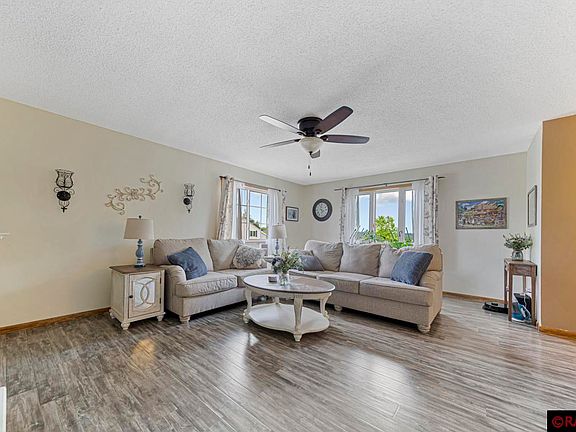 On the corner of Turpin Street, on the North end of St. Peter, you will find this well cared for, highly updated graceful home. Step into a large foyer, up to the main level spacious living room with an abundance of natural light, and grey toned flooring throughout. The Kitchen is a wonderful gathering place with a center island, white tiled backsplash and deep grey cabinets, hardstone countertops and stainless-steel appliances. The main floor has a full bathroom with newer cabinets and a farmhouse vibe. The main level also has two bedrooms. The lower level has impressive living room space lined caramel and tobacco toned flooring, and filled with more natural light and look out windows. The lower level also houses 2 additional bedrooms, a full bathroom highlighting tiled floor and black and white tones. You'll also find a large laundry room, with built-in shelving, sink and washer, dryer. Enjoy summers from your sweet outdoor patio, shaded with a pergola and surrounded by flowers and fenced. Great location, and solid home.