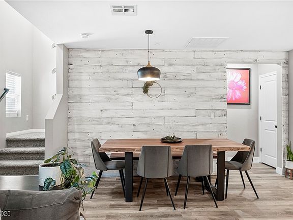 Renovated and stylish, this townhome sits in one of Inspirada’s best locations—walking distance to schools, parks, the café, pools, and the farmers market. The gated courtyard offers low-maintenance outdoor space, perfect for relaxing or entertaining. Inside, the open concept connects the living, dining, and kitchen seamlessly. The kitchen features white quartz counters, a custom backsplash, pendant lighting, and stainless steel appliances. The living room has great natural light, a custom entertainment wall, and a modern ceiling fan. Downstairs also includes a half bath, storage closet, and separate laundry room. Upstairs are two private primary suites, each with its own ensuite bath, ceiling fan, and closet. One of the most affordable and stylish homes in Inspirada—all while enjoying world-class amenities and a walkable, social community. Don’t miss this rare opportunity!