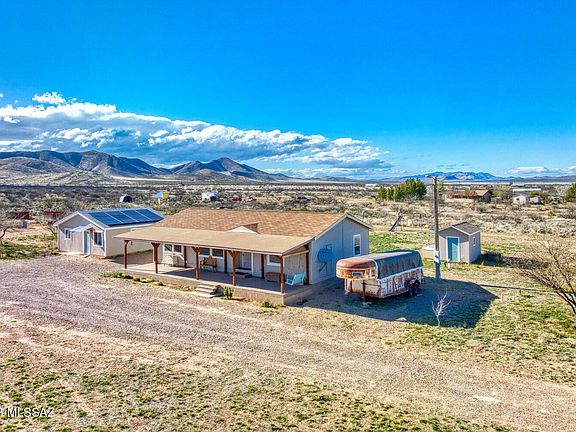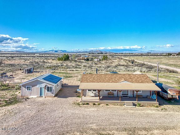 Gorgeous Dragoon Mountain views from this amazing homestead with TWO homes, located off of PAVED Dragoon Road on 5 acres, approx. 1.5 mi from the Golden Rule Vineyard. Catch the cool breeze on the massive covered porch of the Main House. 3Bd, 2 Ba Clayton MFH on a block foundation w/updated kitchen, laundry & flooring. Comfy Owners Suite has walk-in closet and spacious bath w/large shower. The Guest House is 1 BD, 1 BA w/kitchen & laundry, can be rented out for additional income. Both are all electric with LEASED Tesla solar panels. Private Well w/3,000 gallon tank in the well house. Live your homestead dreams with a horse corral, goat pens, chicken & duck coops, fruit trees & garden space. Everything is here to be self-sustainable yet EASY ACCESS to I-10 and Hwy 191. A real STAND-OUT !!