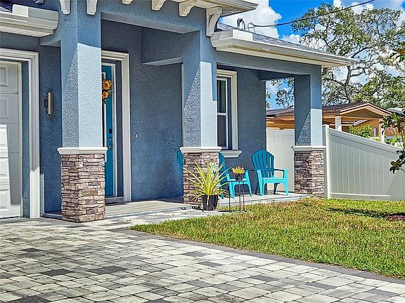 Under contract-accepting backup offers. Discover this beautiful 2020-built home in Seminole Heights, known for its exciting local entertainment scene, including live Jazz, Rock and Blues, as well as fantastic eateries and some of the best Craft Breweries in the state. With NO HOA and NO CDD, NO FLOOD, enjoy true freedom in this beautiful 4-bedroom, 2-bathroom home. Step inside to find soaring ceilings, sleek modern decor, and exquisite porcelain floors throughout. The home boasts crown molded tray ceilings with recessed lighting in multiple rooms. The luxurious Master Bedroom features double walk in his/her closets, a private bath with double sinks and a spacious walk-in rain shower. Feast your eyes and appetite on the Gourmet kitchen complete with granite counter-tops, stainless steel appliances, modern showcase cabinets and a massive breakfast bar overlooking the open-concept living space filled with natural light. Let the mood be set and enhanced with teardrop lanterns and recessed lighting set in the tray ceiling finished with gorgeous crown molding. Double doors lead out to a PVC-fenced yard, perfect for entertaining complete with your own Putting Green! Good times! No storm damage here! Conveniently located just 20 minutes from Downtown Tampa, Tampa International Airport, Busch Gardens, and Lowry Park Zoo. This is the perfect opportunity to live in a stunning home close to everything Tampa has to offer!