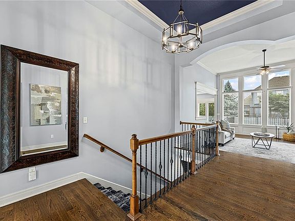 Your First Step Inside Will Make You Want To Call It Home! Enjoy the comfort and elegance of living in this luxurious house with its spacious open floor plan and inviting atmosphere perfect for relaxing and entertaining. The gleaming hardwood floors add a touch of sophistication reflecting natural light throughout the spaces. High soaring ceilings enhance the sense of openness and grandeur while the elegant great room fireplace provides warmth and charm to this superb home. The spectacular kitchen and adjoining dining area boasts quartz countertops, granite backsplash, hardwoods, lots of cabinets, u/c lighting, s/s appliances, breakfast bar, w/i pantry along with w/o access to a 16x17 maintenance free deck and peaceful backyard for additional enjoyment. The impressive great room showcases hardwoods, fireplace, ceiling fan, wall of windows with an abundance of natural light. The primary suite highlights a sanctuary of comfort and elegance as it spotlights a spacious 14x17 bedroom with tray ceiling, carpeting, ceiling fan, lots of natural light along with an exquisite en-suite bathroom that includes quartz tops, ceramic tile, two single vanities, built-in cabinets, oversized shower w/bench, w/i closet providing a true oasis retreat. One more stylish full bathroom, one additional roomy bedroom and the laundry room on the main level for the ultimate convenience and comfort. Awesome finished basement features an outstanding 16x23 family room plus two more terrific bedrooms with carpeting, ceiling fans, egress windows, w/i closets and a full bathroom. Huge unfinished basement area with lots of storage space, lockers, sink, plumbed for an additional bath. Numerous stunning upgrades include new refrigerator (2025), roof (2022), HWH (2023), deck (2019), remodeled master bathroom (2019), water softener, water purifier, sprinkler system, many more items plus incredible location, superb curb appeal, all kitchen appliances staying too! Make This Dream Home Yours!!